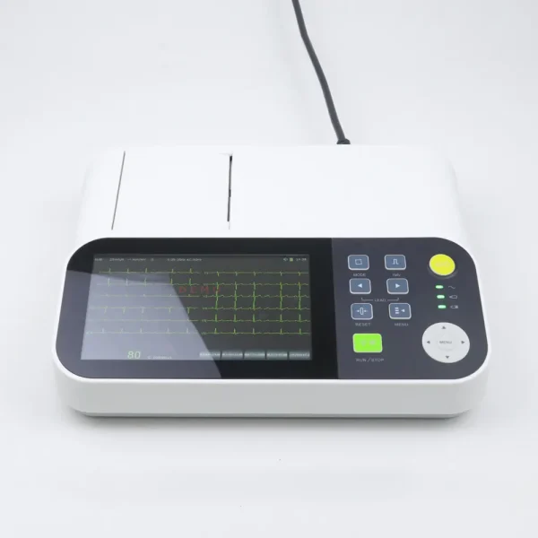 2.Simultaneously acquisition of 12 lead, full screen display of 12 channel ECG waveforms. 7” color screen, both push-button and touch operation(optional).